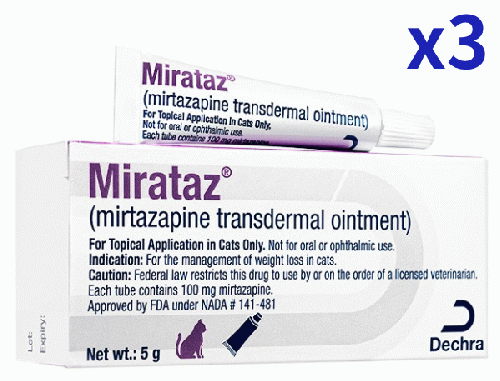 ミルタザピンは猫の体重減少のコントロール薬としてFDA(アメリカ食品医薬品局)に承認されています。