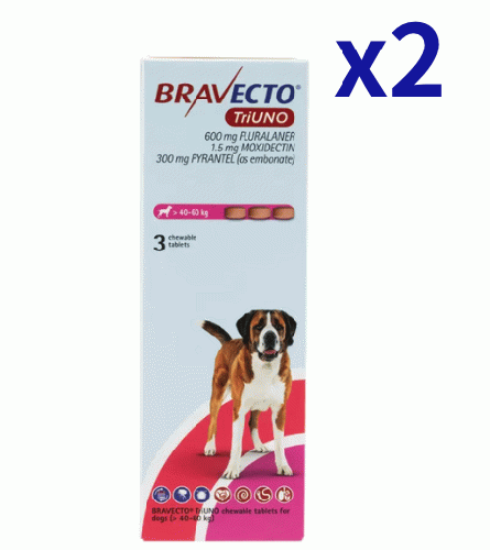 ブラベクトトリウノ >40-60kg | 3錠x2箱| ノミ | マダニ | フィラリア