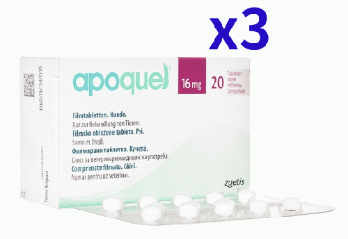 アポキル(Apoquel) チュアブル錠 16mg|犬用 20錠 有効成分:オクラシチニブマレイン酸塩。ミートフレーバーのチュアブル錠。犬のアトピー性皮膚炎およびアレルギー性皮膚炎に伴う掻痒(かゆみ)の緩和に使用されます。