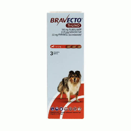 ブラベクトトリウノ >5kg-10kg | 1箱 3錠 | ノミ | マダニ | フィラリア